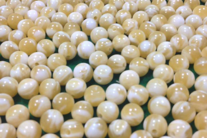 Producimos cuentas para rosarios, industria de la moda y bisutería, realizados en imitación madreperla y piedras duras, como cuerno negro, cuerno claro, polaris, coral, ecrù, madreperla con seda e imitación de granito. Para garantizar la maxima personalización del producto, realizamos cuentas en colores diferentes, matices y tamaños (desde 4mm hasta 10mm).