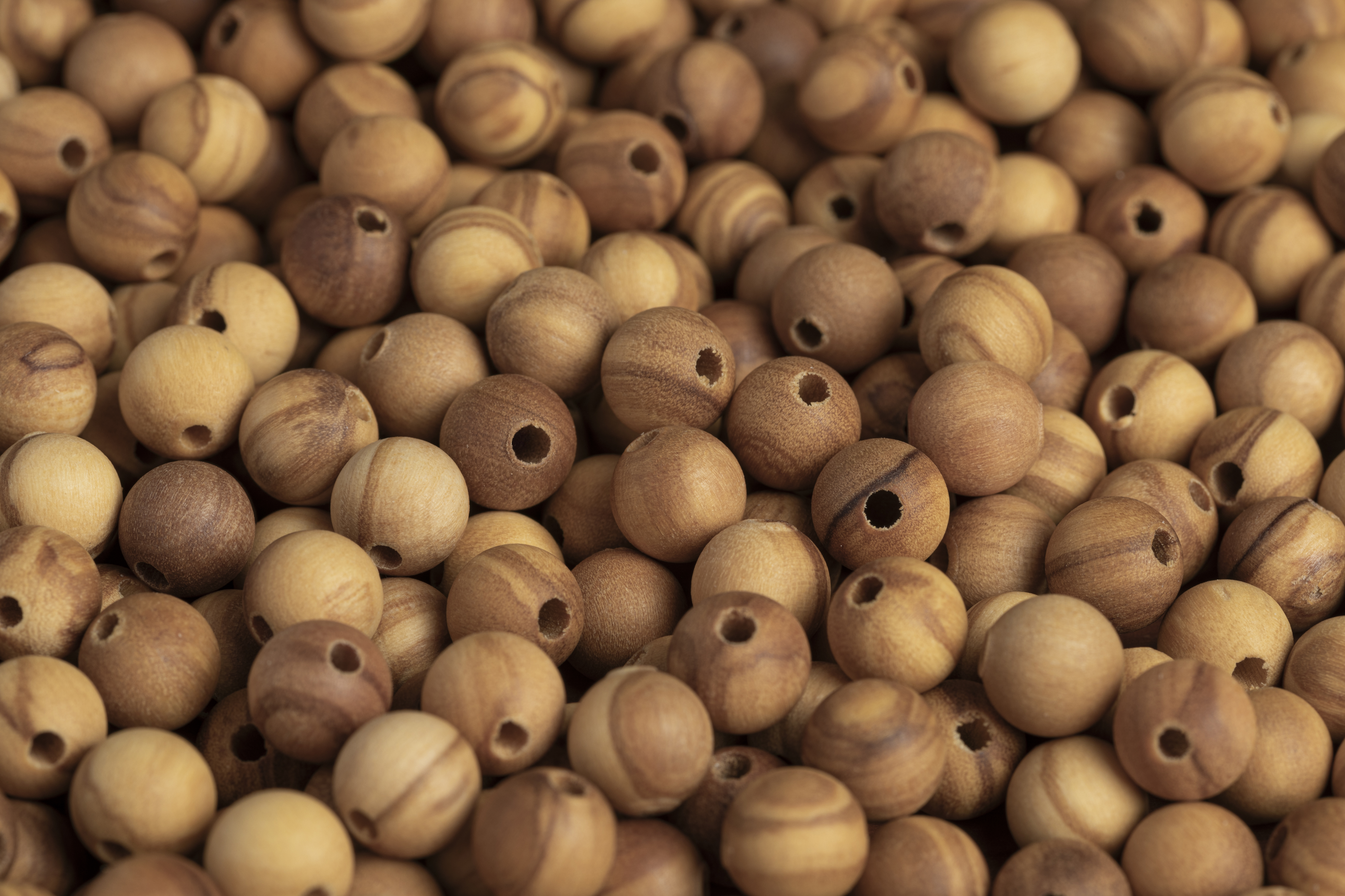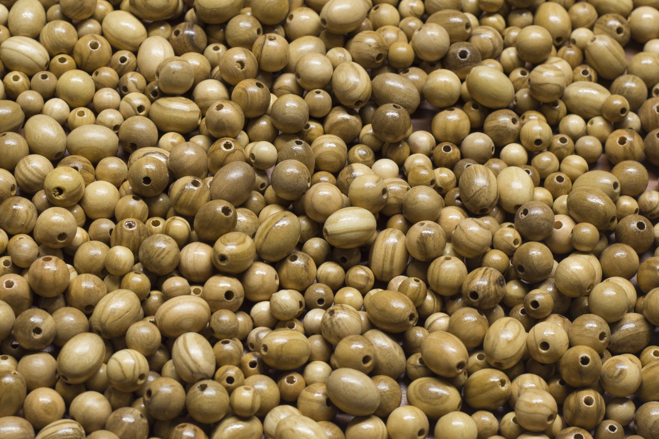 Realizziamo grani in legno di ulivo italiano certificato, legno di carpino o similcocco, materiale particolarmente indicato per essere personalizzato e tinto in diversi toni di colore e nuance, noce scuro e noce zebrano, pregiato legno africano dalle tonalità naturalmente sfumate. Le differenti tipologie di legno utilizzate rendono questi materiali ideali per creare grani per articoli religiosi, tau e croci di varie dimensioni, accessori moda e bigiotteria. Utilizziamo solo materiali rigorosamente certificati e scelti con attenzione per ottenere di volta in volta un prodotto di altissima qualità. Garantiamo inoltre la massima personalizzazione dei grani sia nelle misure (da 4mm a 25mm) che negli intarsi e lavorazioni, tra cui spicca la lucidatura, operazione che assicura il giusto grado di opacità e brillantezza al prodotto.